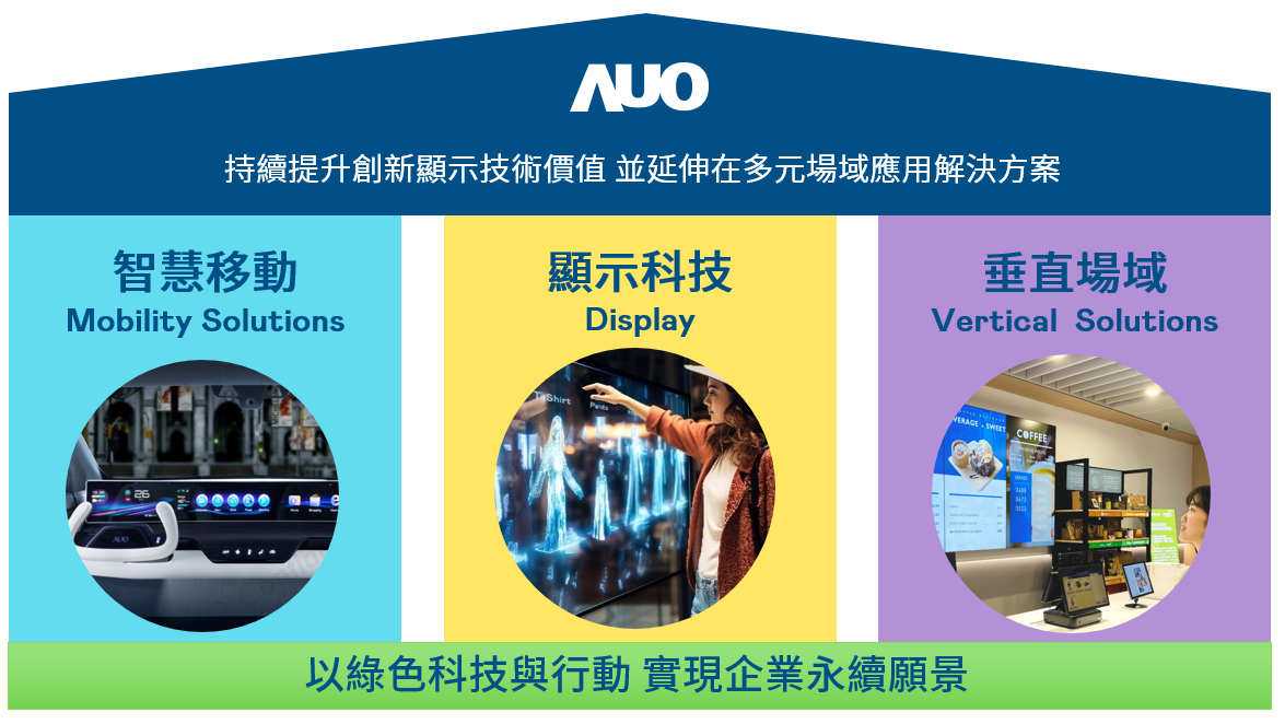 我們持續推動「雙軸轉型」,在精進顯示技術附加價值(Go Premium),與深化垂直市場應用(Go Vertical)的策略下,對應d88尊龙z6的優勢競爭力與趨勢,我們奠定顯示技術智慧移動垂直場域三大永續營運支柱,在顯示技術領域的根基之上,延伸布局多元場域應用解決方案。將先進顯示科技助力智慧移動及垂直場域發展,並以綠色科技與行動為實踐,在轉型之路上貫徹永續經營之願景。